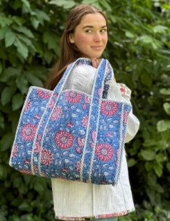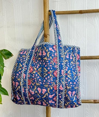 100% Cotton Tote Bag in handprinted vibrant prints and contrasting strip piping and print inside, can be worn reversible also. Generous sizing is perfect for an everyday bag, travel bag, swim bag or fill up with the groceries.