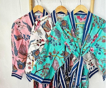 100% Cotton Kimono Style Robe with Hand Block printing.